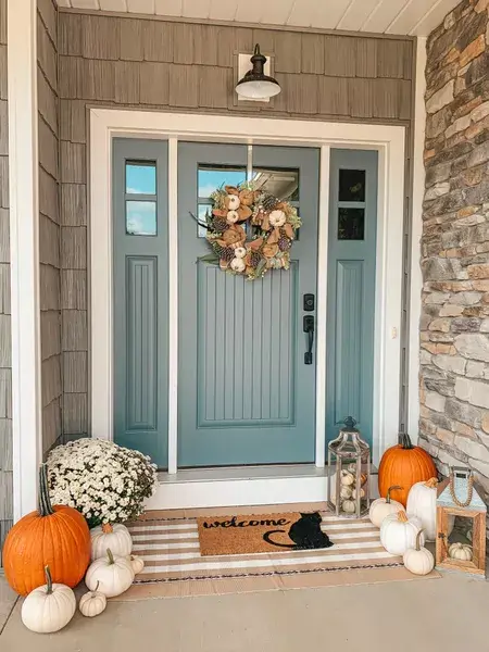 Start your fall decorating journey at the entrance of your home. Consider placing a rustic wooden sign with “Welcome” or a fall-inspired greeting. Adorn your front door with a seasonal wreath made of dried leaves, pinecones, and burlap bows. Adding a couple of potted mums or pumpkins on either side of the door enhances the welcoming ambiance.