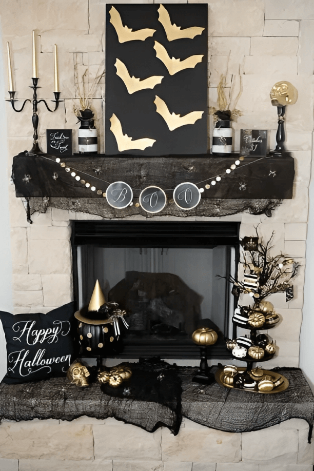 Certainly, here are more Halloween fireplace decor ideas to help you unleash your creativity and elevate your spooky ambiance: