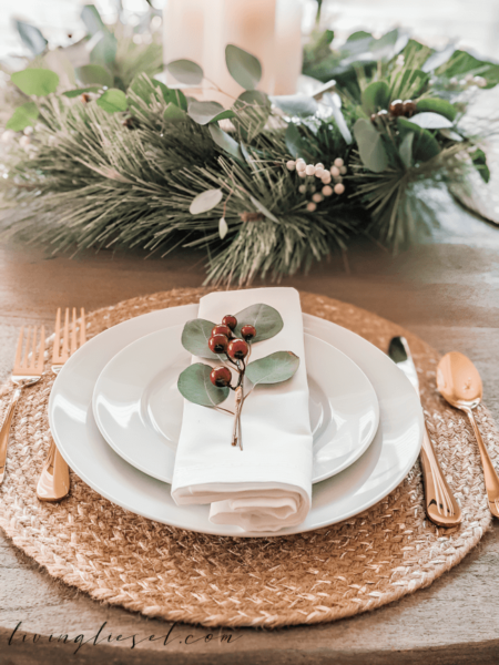 • Use natural materials like wooden ornaments, cloth napkins, and real greenery to minimize the environmental impact.