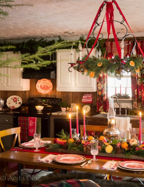 • If you have a chandelier above your dining table, consider decorating it with festive elements like garlands, bows, or ornaments to tie it into your overall decor.