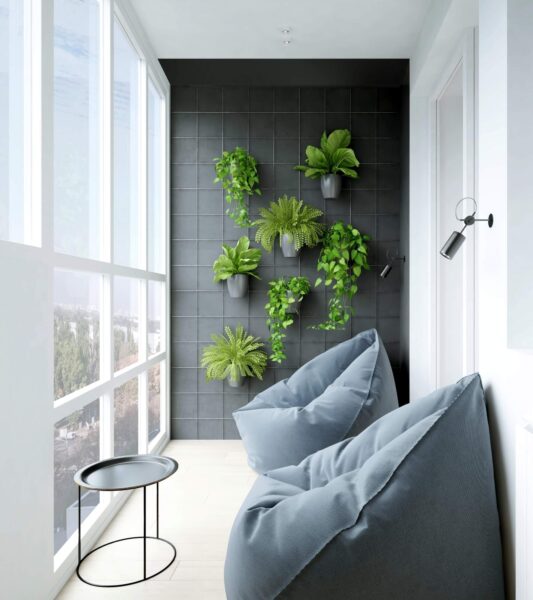 Vertical gardening is an excellent way to maximize space while adding a striking visual element to your balcony. Consider using hanging planters, wall-mounted shelves, or trellises to create a vertical garden. Mix and match different plant varieties with varying colors, textures, and sizes to create an eye-catching display. You can also grow herbs and small vegetables in vertical planters, turning your balcony into a functional mini-garden.