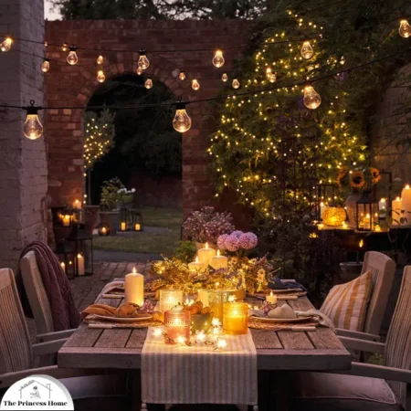 Hang string lights across your outdoor space to create a warm and enchanting glow. Choose string lights with soft white or warm yellow bulbs for a cozy ambiance. You can hang them along fences, pergolas, trees, or across your patio or deck to add a magical touch to your outdoor setting.