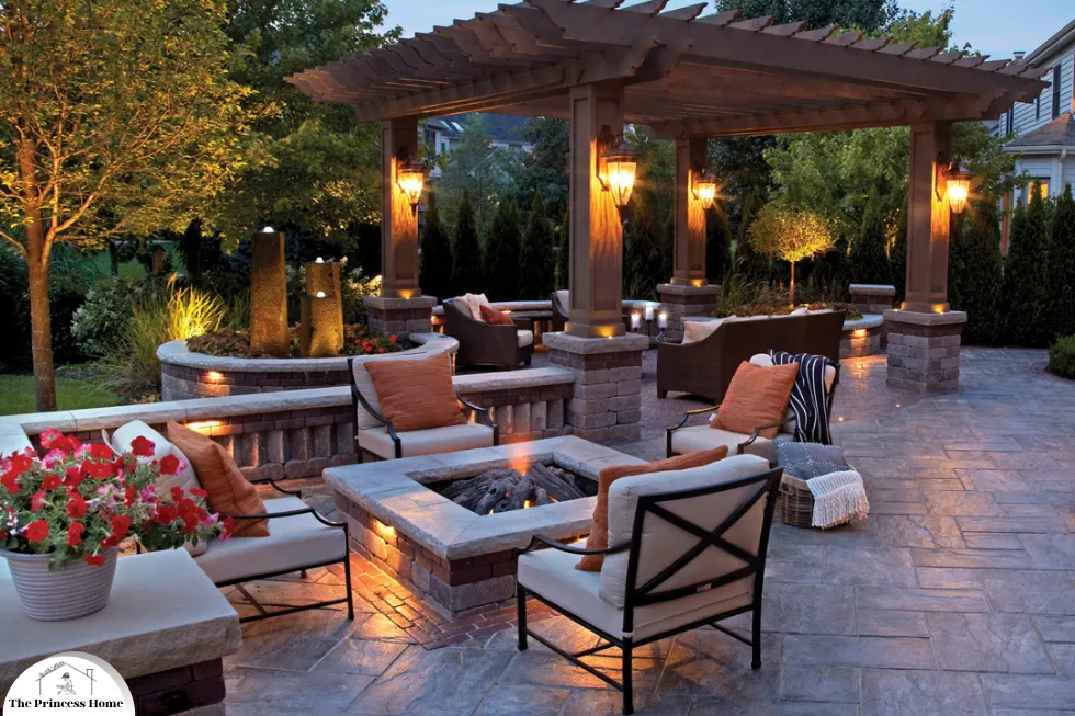 Install outdoor lighting to extend the use of your seating area into the evening hours. Hang string lights, lanterns, or solar-powered path lights to create a warm and inviting ambiance.