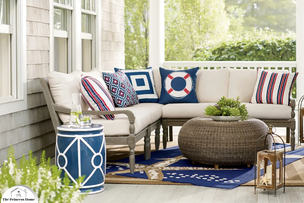 Embrace the classic color palette of blue and white to evoke the fresh and breezy feel of coastal living. Use blue and white striped cushions, pillows, and throws to add pops of color and pattern to your outdoor furniture. Choose outdoor rugs with blue and white motifs such as waves, anchors, or sailboats to tie your coastal theme together. Incorporate blue and white ceramics, lanterns, and tableware into your outdoor dining area to complete the coastal look.