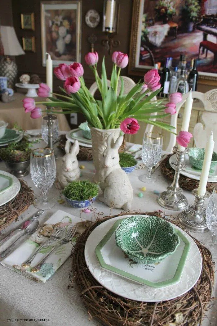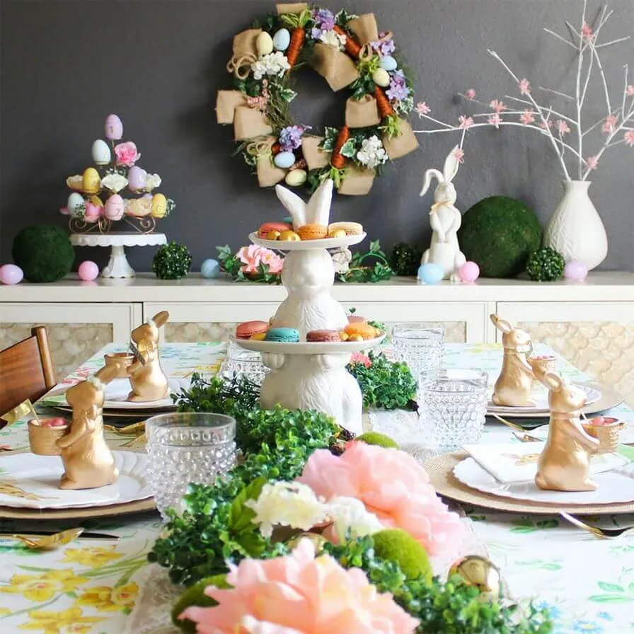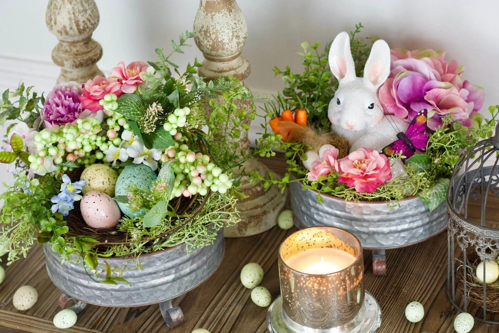 One of the most enchanting ways to incorporate bunnies into your centerpieces is by combining them with fresh flowers. Create a lush and captivating arrangement by placing a ceramic or plush bunny amidst a bed of vibrant spring blooms like tulips, daisies, and daffodils. The contrast between the soft bunny and the vivid flowers adds an element of charm that will captivate your guests.