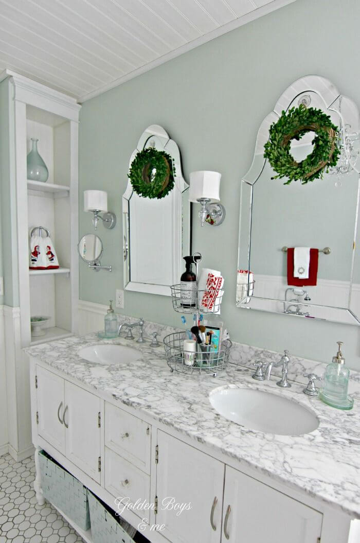 The first step in creating a festive bathroom is choosing a Christmas color scheme. Traditional colors like red, green, and white work well, but you can also opt for more modern and elegant options like silver, gold, or even navy blue and blush pink. Your color scheme will set the tone for your entire bathroom decor.