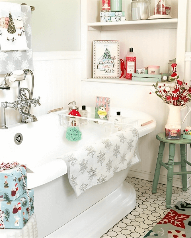 Certainly! Let’s explore some additional Christmas bathroom decor ideas to help you create an even more festive and cozy atmosphere in this often-overlooked space.