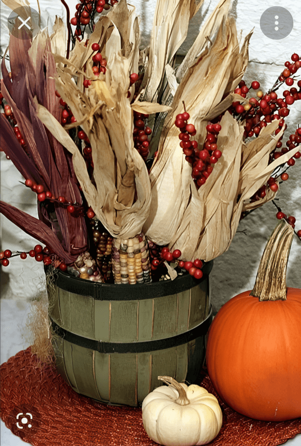 Corn husks are a unique and budget-friendly option for fall entry decor. You can make corn husk wreaths or simply bundle some together with a decorative ribbon and hang them on your door.