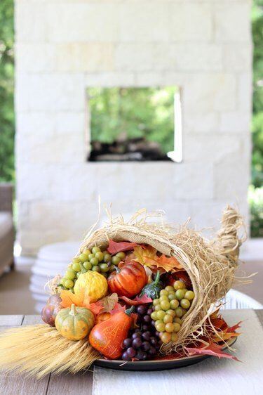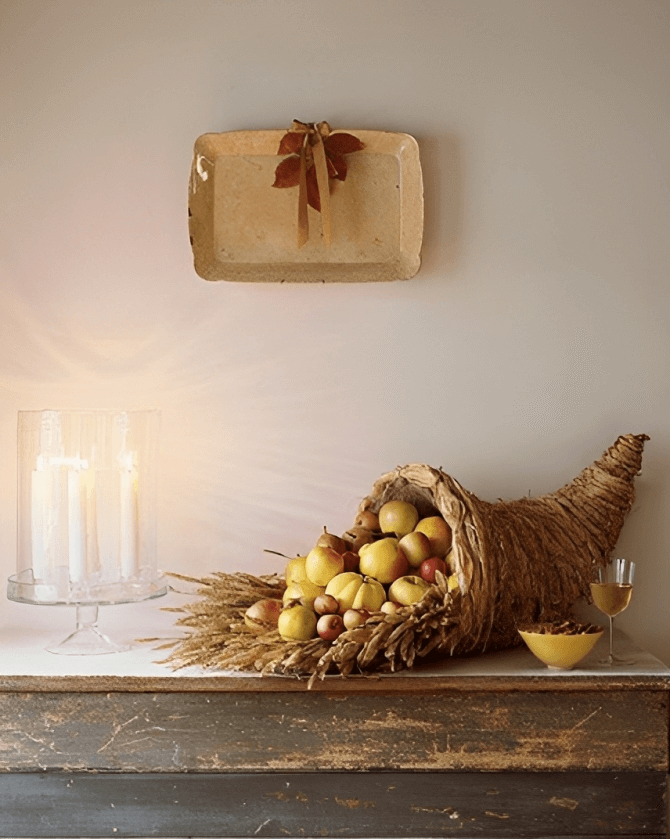 A cornucopia overflowing with seasonal fruits, vegetables, and flowers is a classic symbol of abundance and harvest. Place one on your entry table for a traditional and inviting touch.