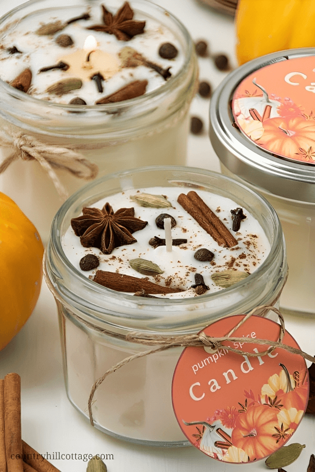 Complete the farmhouse fall ambiance with scents that evoke the season. Light cinnamon, apple, or pumpkin spice-scented candles to fill your home with the delightful aroma of fall.