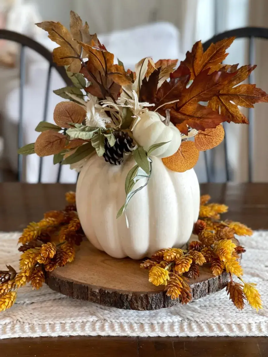 Create stunning centerpieces using seasonal produce. Hollow out pumpkins to make unique vases for fall flowers like sunflowers, mums, and dahlias. Combine them with decorative corn, acorns, and pinecones for an authentic harvest feel.