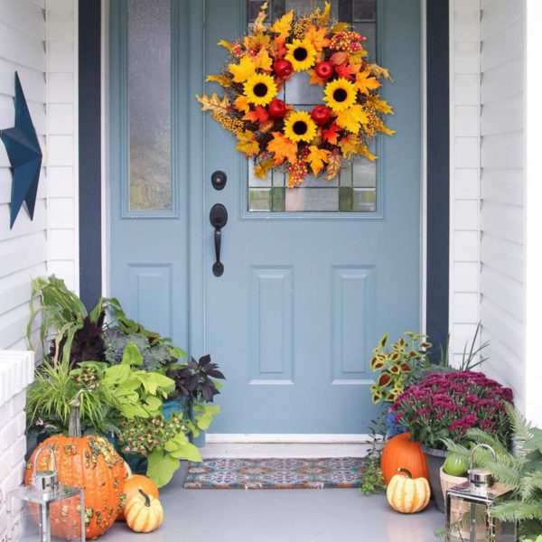 • When hanging fall decor on your front door, make sure it doesn’t obstruct the door’s function, such as opening and closing. Use appropriate hooks, hangers, or adhesive materials that won’t damage your door’s surface. Also, be mindful of local regulations or homeowners’ association rules regarding exterior decorations.
