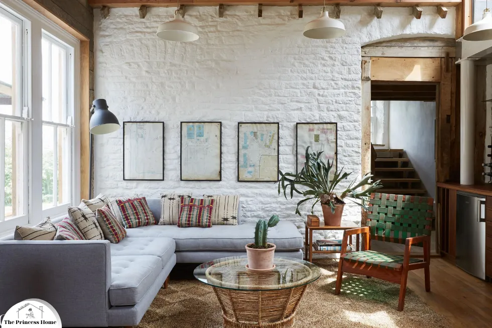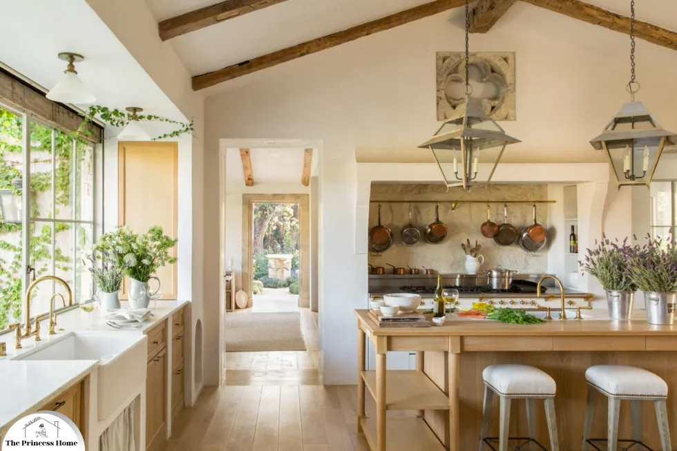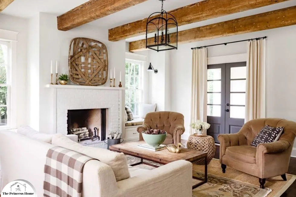 If your home has architectural features like exposed beams or brick walls, highlight them to enhance the rustic feel. Leave beams unpainted or consider whitewashing brick for a timeless look.
