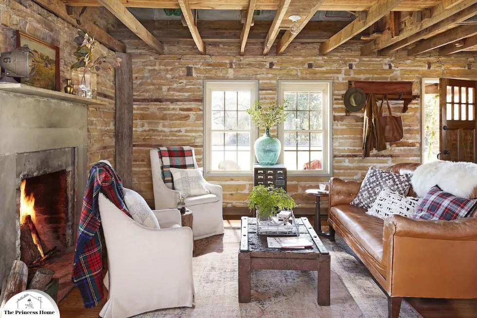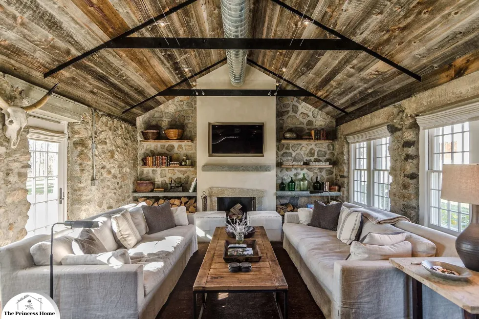 Bring the outdoors inside by incorporating natural elements such as exposed wooden beams, stone accents, or a fireplace with a stone surround. These features add character and authenticity to the farmhouse style.