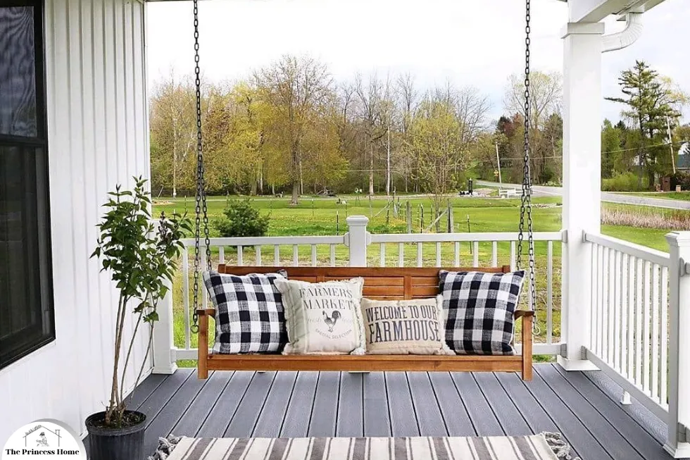 Don’t forget the exterior of your home when embracing the farmhouse style. Incorporate elements such as a front porch with a swing, white picket fencing, and window shutters to create an inviting farmhouse facade. A farmhouse exterior typically evokes a sense of charm, warmth, and simplicity, reflecting the traditional style of rural farmhouses.