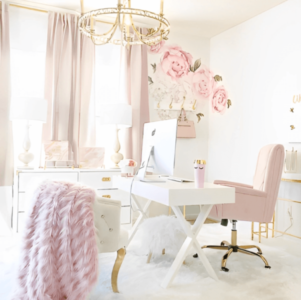 • Use a variety of shades of pink and gold to create interest. You don’t want your office to look too monochromatic.