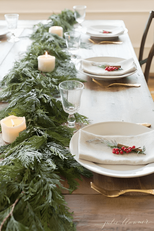 - Winter Greenery: Adorn your table with pine branches, pinecones, and sprigs of holly for a natural and festive look.
