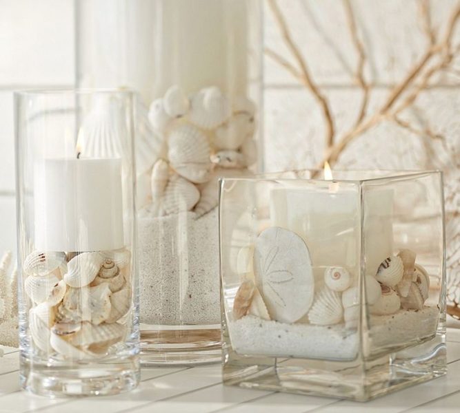 Make your home decor inspired by the picturesque nature on the beach where sand, shells and others, and you can do this by decorating transparent vases with sand, shells or starfish.