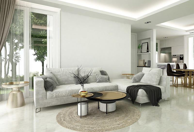 Don’t use rugs for the entire area of the room, use a medium-sized rug in the middle of the room.
