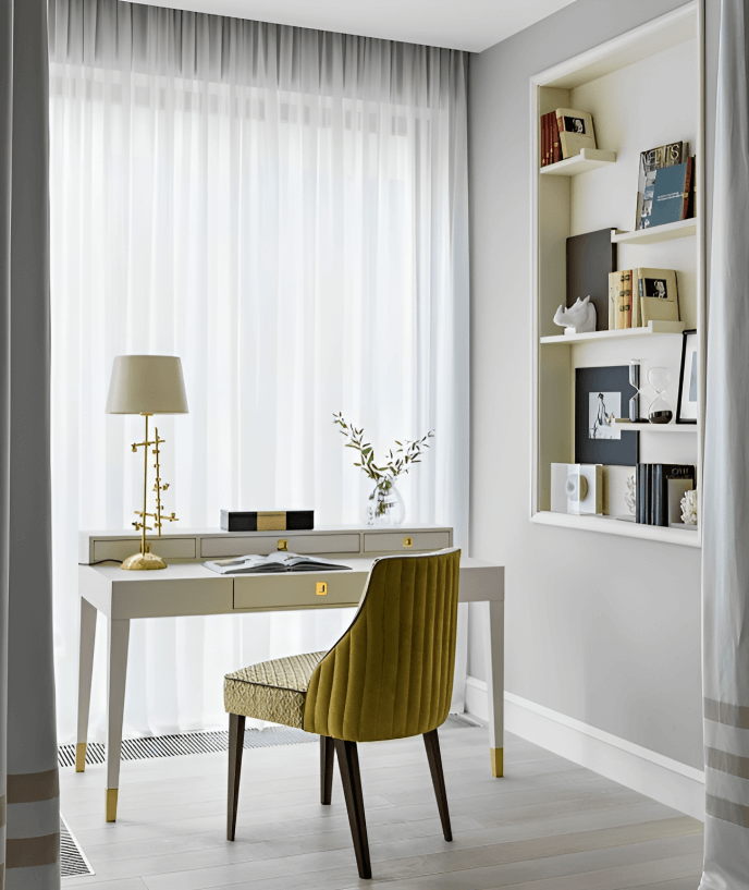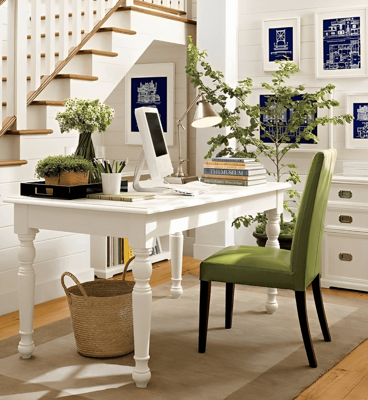 The foundation of a chic office is a neutral color palette. Opt for soothing tones like whites, creams, and soft grays. These colors create a serene backdrop that fosters concentration and elegance.