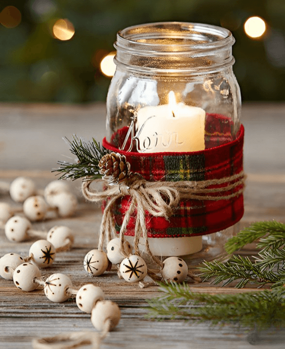 Transform ordinary mason jars into charming candle holders or vases by painting them with Buffalo check patterns.