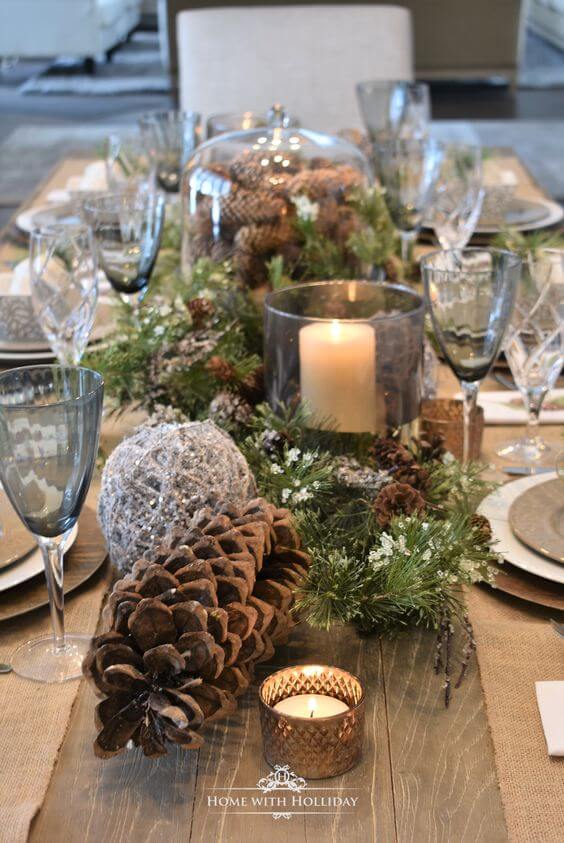 Arrange pine cones along the center of your dining table as a unique and eye-catching table runner. Intersperse them with candles or greenery for a stunning centerpiece that will be the focal point of your gatherings.