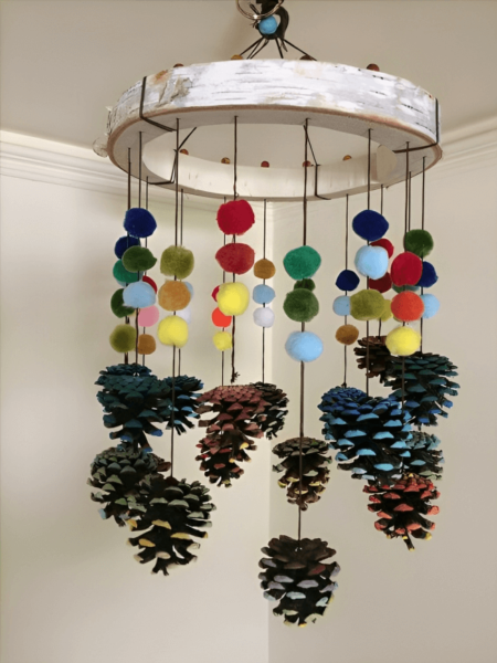 Craft a delightful pine cone mobile to hang in nurseries, children’s rooms, or even as a unique addition to your patio. Attach pine cones to strings or twine at varying lengths and suspend them from a wooden hoop or branch. Paint the pine cones in fun colors or add small trinkets to the strings for added flair. Mobiles can be customized to match any theme or decor style.