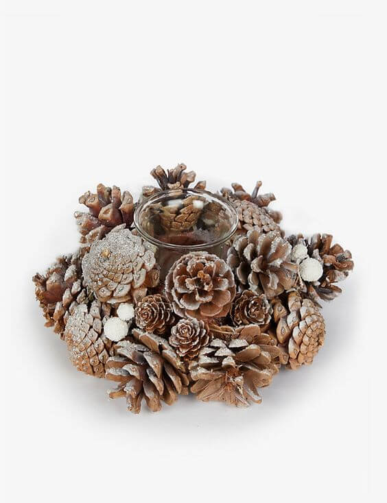 Transform your dining table into a natural wonderland with pine cone centerpieces. Fill a decorative bowl or tray with pine cones, and add candles, fairy lights, or seasonal foliage for a striking centerpiece. For a more rustic look, place the pine cones in a wooden crate or a burlap-covered tray. Pine cone centerpieces work beautifully for both casual and formal gatherings.