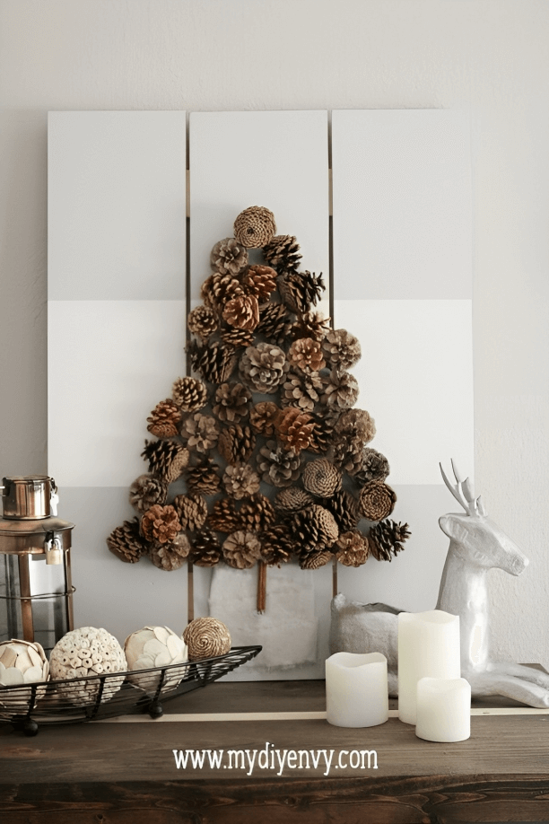 Craft a miniature Christmas tree using pine cones of various sizes. Adorn it with tiny ornaments and lights for a festive and nature-inspired holiday decoration.