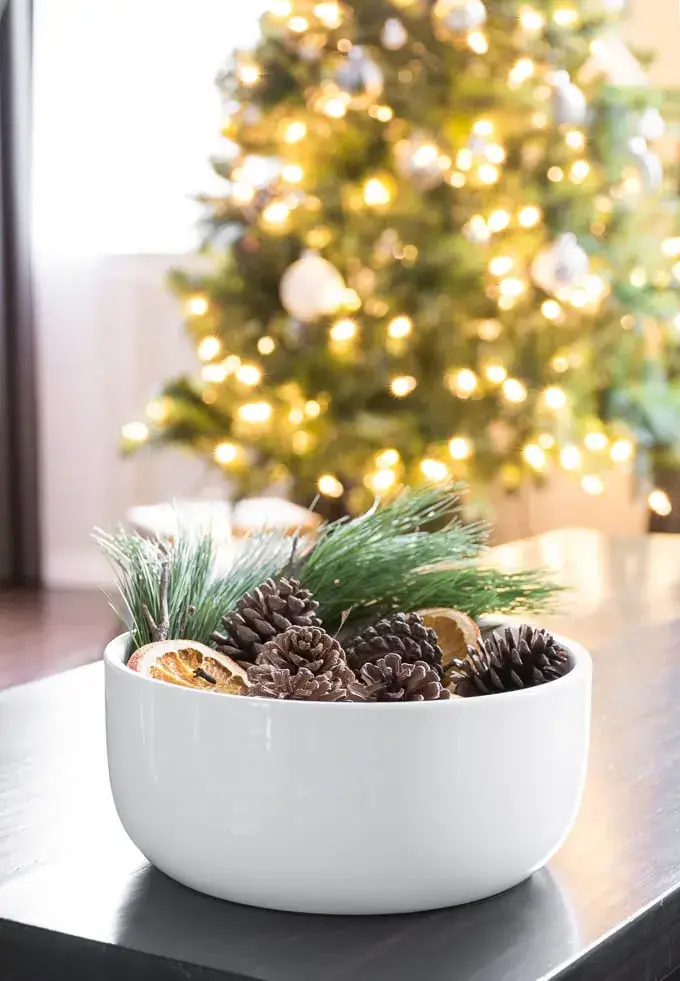 Fill decorative bowls with pine cones and place them strategically around your home. Add other natural elements like acorns or dried berries for a simple and cost-effective way to bring the outdoors in.